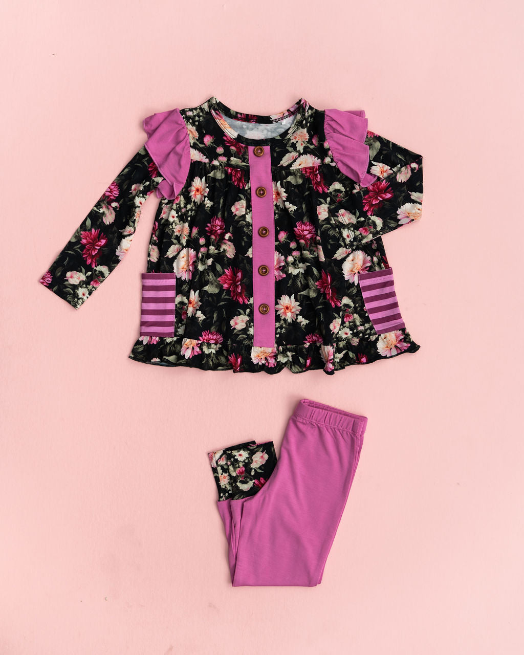 Laree + Co.’s signature designed peplum sets are here! They are so cozy your little one will think they’re wearing jammies. Made from our buttery soft bamboo, this set is super soft and super stylish.
