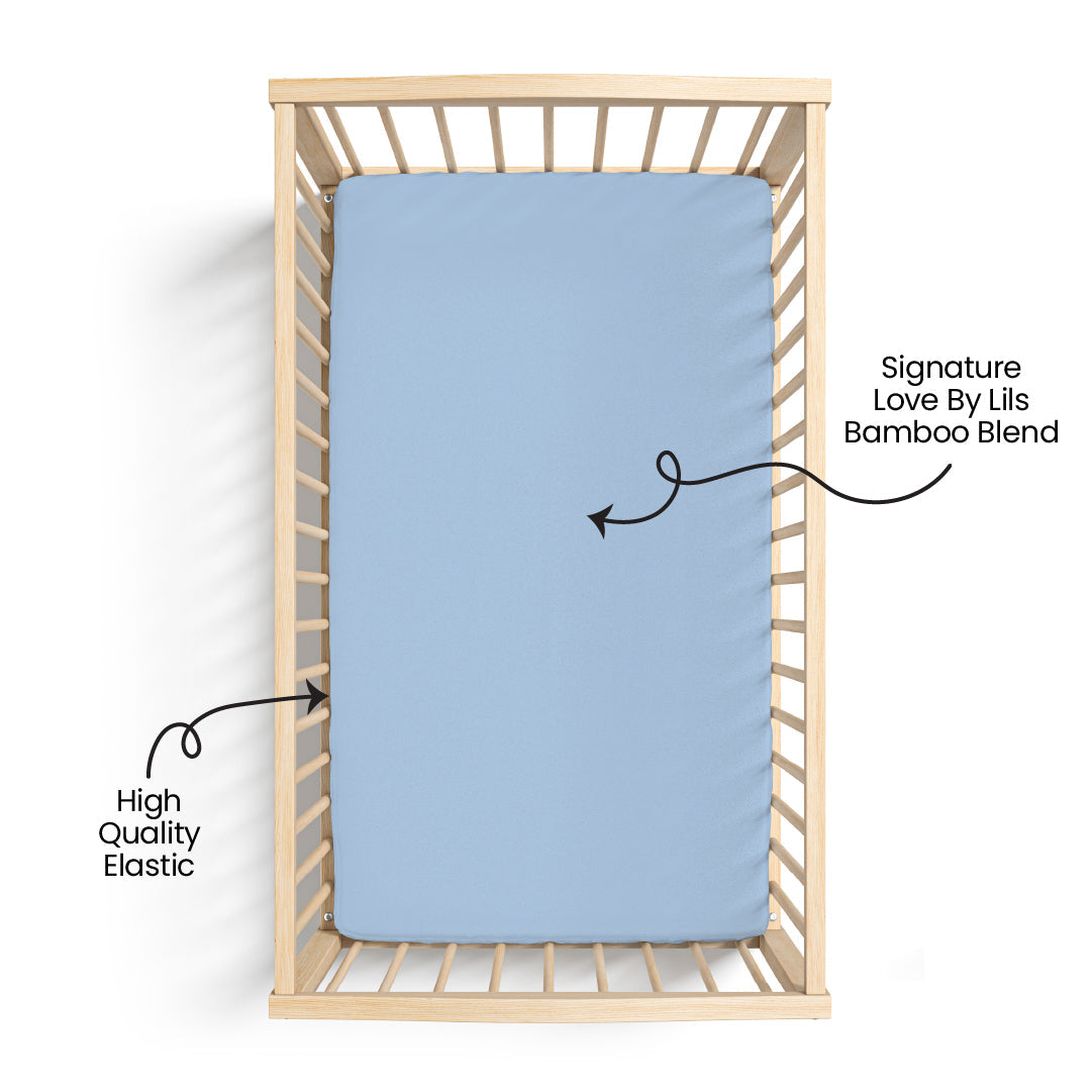 Add some LC to your baby's nursery with our ultra-soft bamboo crib sheet. Crib sheets are designed to fit all standard baby mattresses. Our high-quality elastic around the hem of the entire crib sheet ensures a tight fit that looks clean and modern. Our gentle bamboo fabric is excellent for your cuties's delicate skin, helps with heat regulation, and is buttery soft. Elevate the look of your little one's nursery with our signature designs.