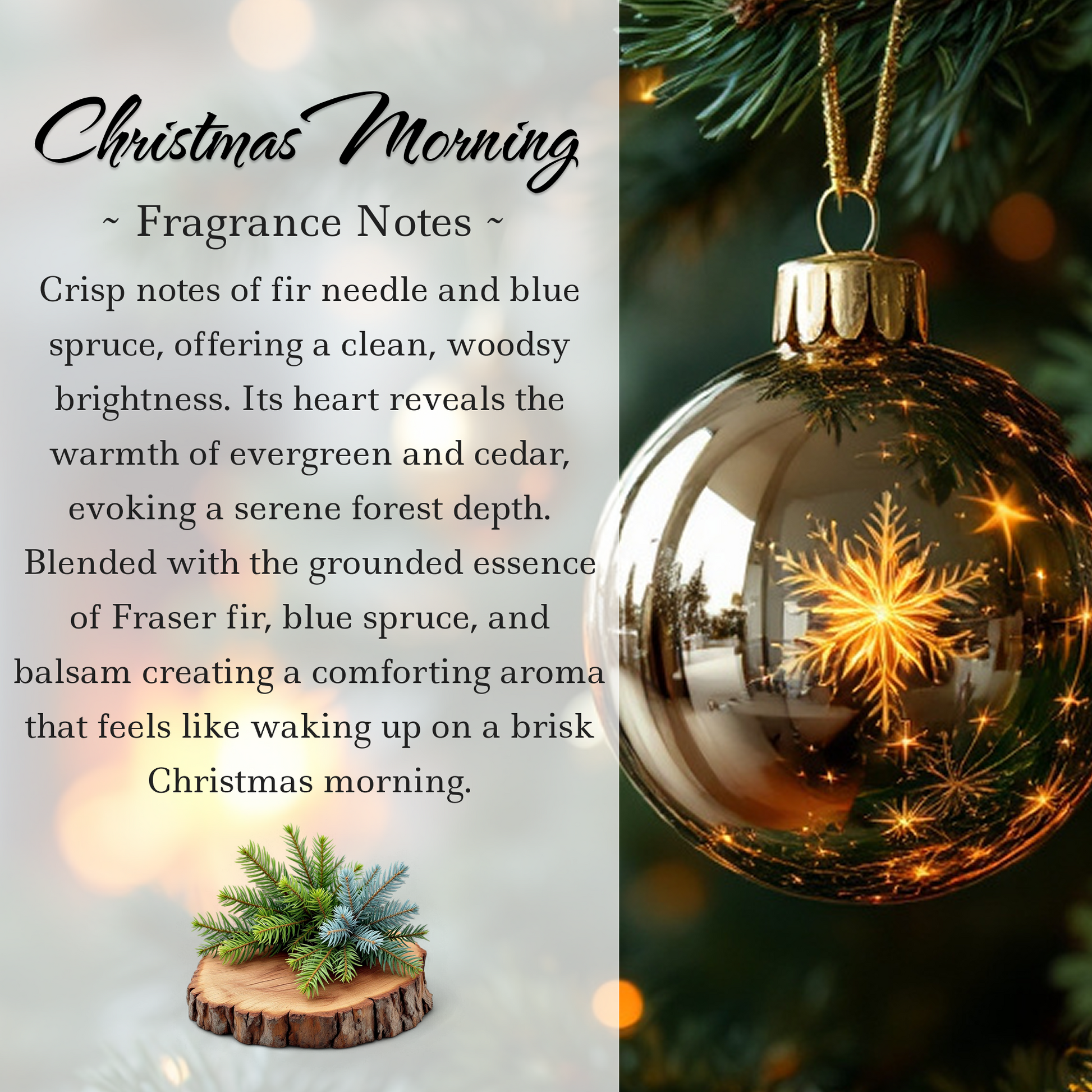 Experience the warmth and wonder of the season with our Crystal-Enhanced Car Diffuser, now featuring the limited edition scent "Christmas Morning." This cozy, inviting blend opens with the crisp aroma of Frasier fir, complemented by layers of cypress and cedar for an earthy, woodsy finish.