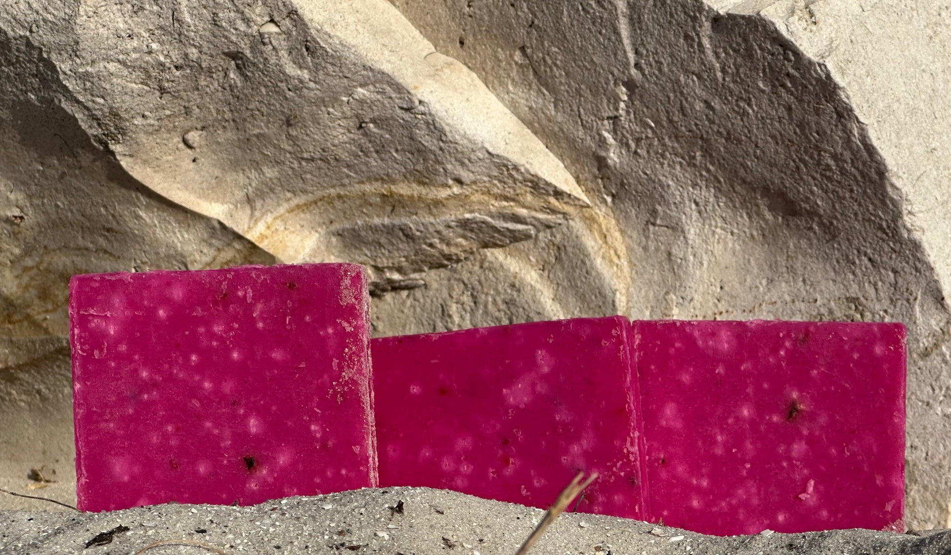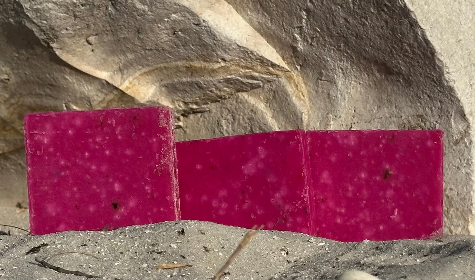 Coconut Oil, Canola Oil, Soybean Oil, Shea Butter, Water, Sodium Hydroxide Lye, Olive Pomace Oil, Sunflower Oil, Sea Salt, Rose Petals, Ground Oatmeal, Fragrance, Colorant