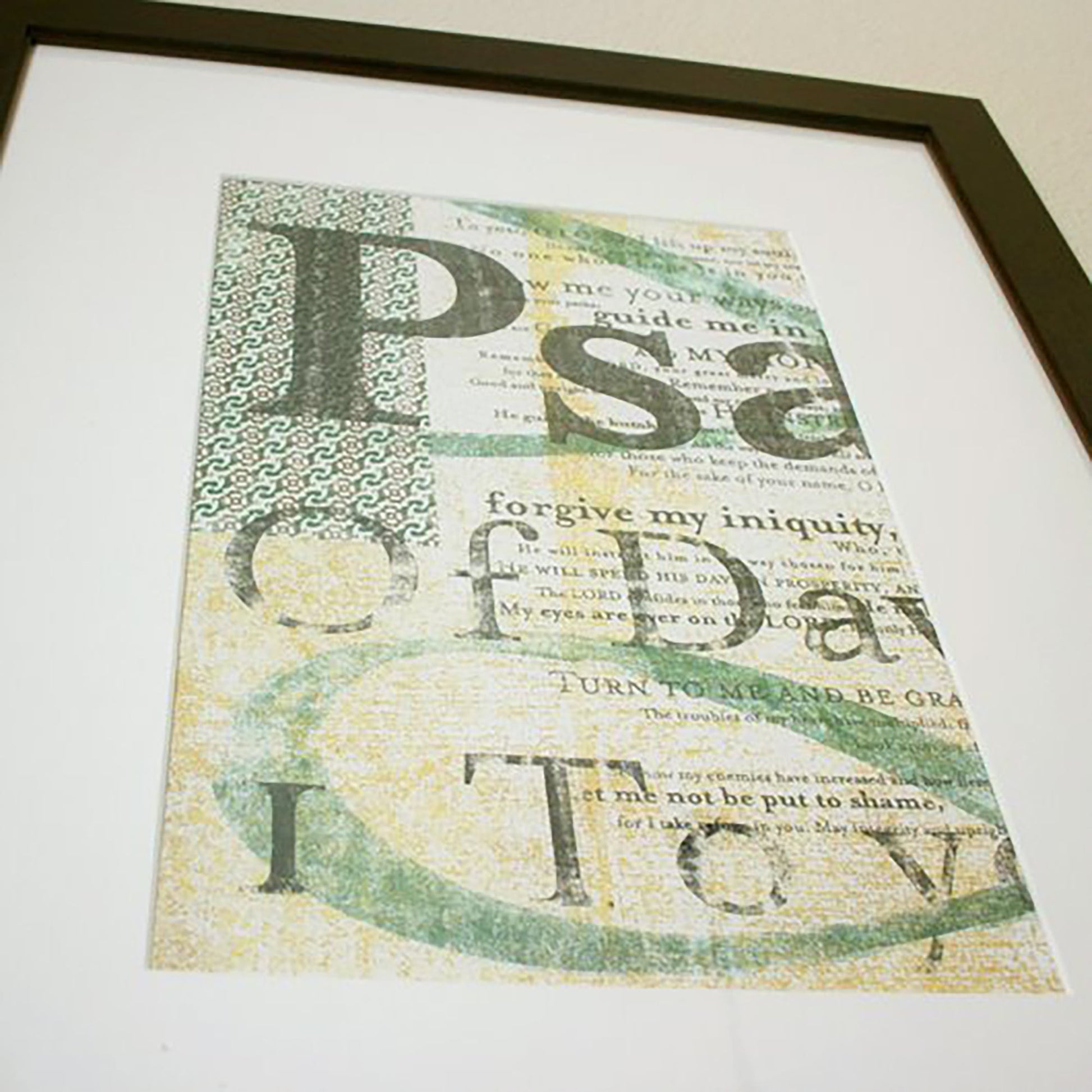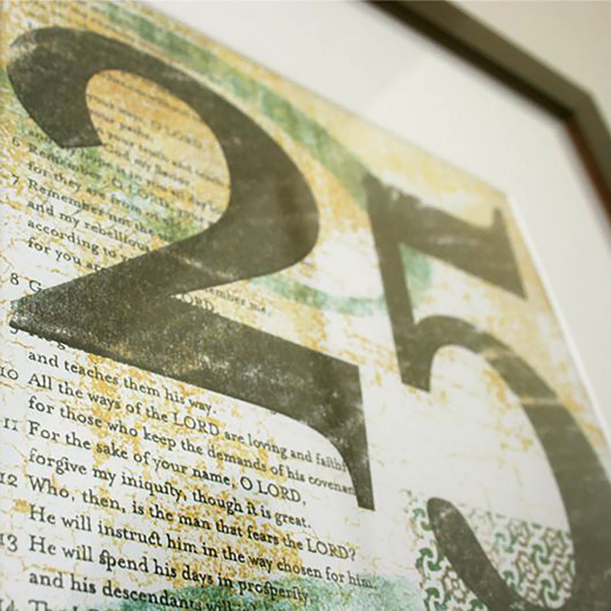 Psalm 25 is about placing your hope in someone who can be trusted. In God. This art print showcases the entire text of Psalm 25 with intricate detail, vintage patterns, and imperfectly distressed transfer techniques.