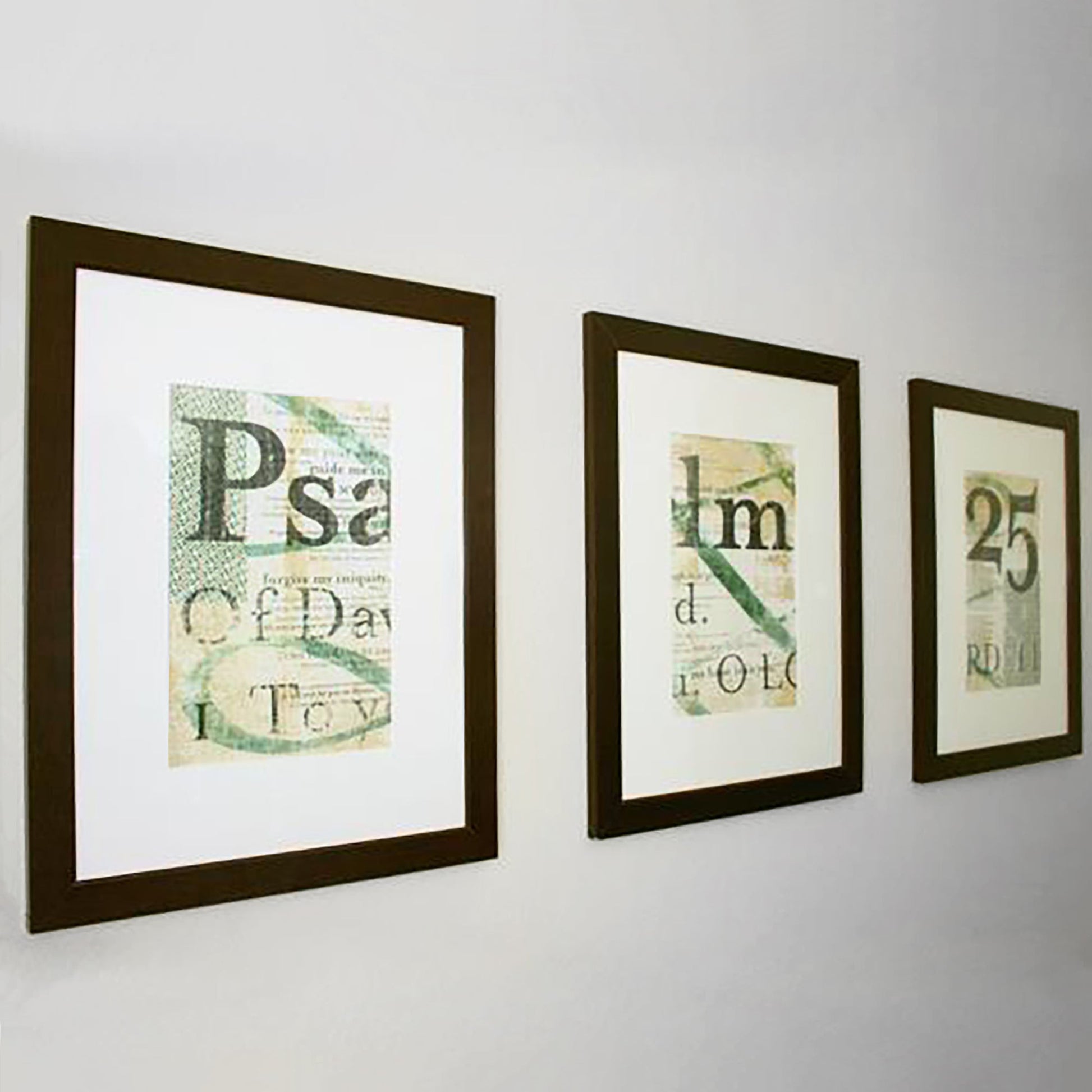 This Artwork Is a Tryptic. The text spans three 11 x 17 inch sheets that are designed to be hung together. We recommend framing them in three 18 x 24 frames with 3 ½ inch wide white mats.