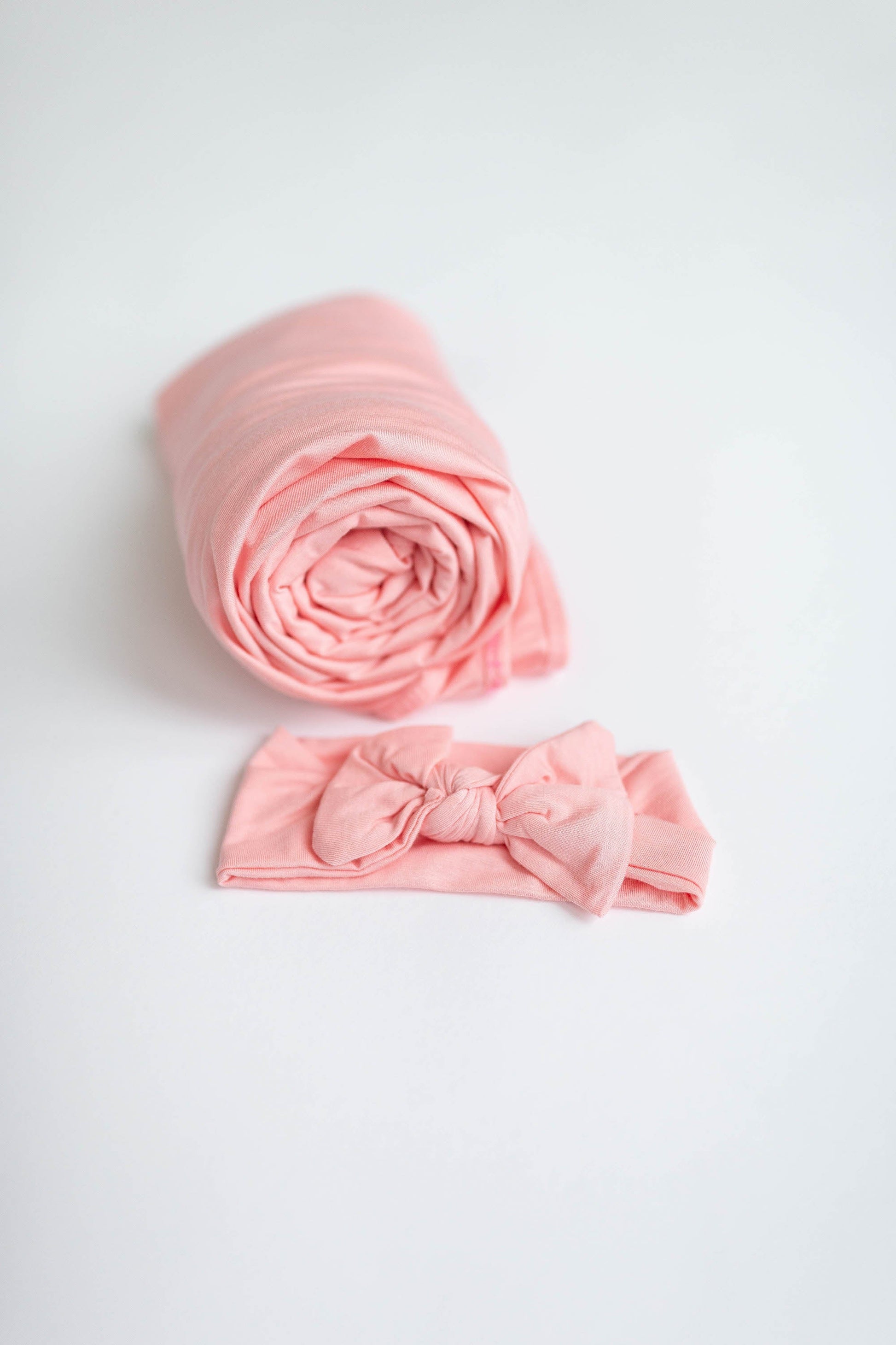 The Stroller Society pink stretch knit swaddle blanket, hat and headband are extremely soft, lightweight and breathable. The baby blanket’s large 47” by 47” size makes it perfect for swaddling, useful as a receiving blanket and it can also be used into the toddler years. The newborn headband and hat are ideal for infants ages newborn to 3 months old and looks great in photos! This bundle is perfect for baby girls and makes the perfect baby gift!