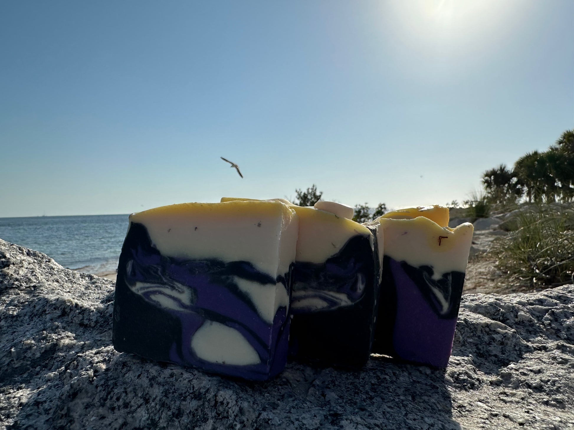Coconut Oil, Canola Oil, Soybean Oil, Shea Butter, Water, Sodium Hydroxide Lye, Olive Pomace Oil, Sunflower Oil, Fragrance, Colorant