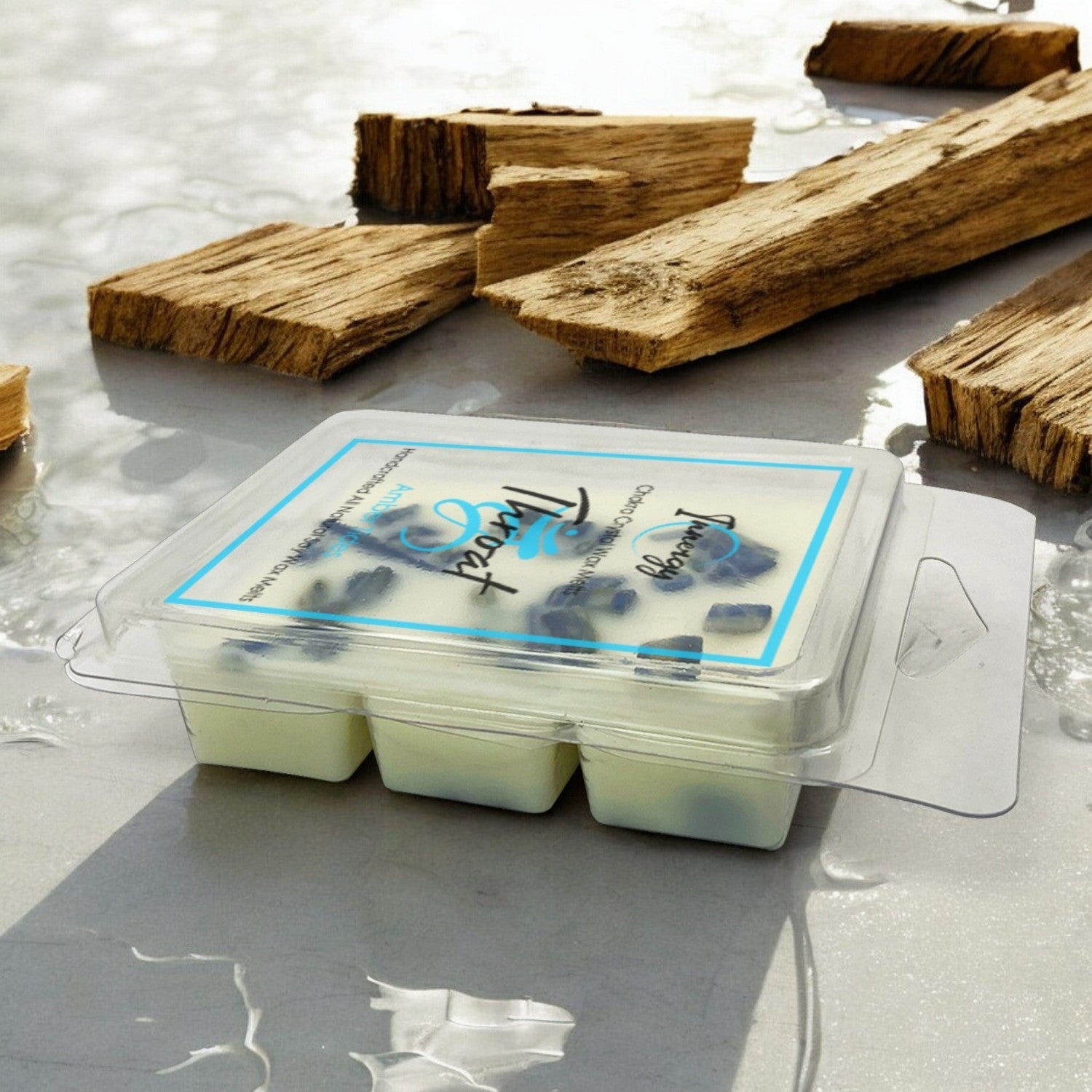 Enhance your communication and embrace harmonious expression with the Throat Chakra Crystal-Infused Wax Melts from Innergy. Delve into the soothing "Amber Tides" aroma, a serene blend of sandalwood, musk, and driftwood that encapsulates earthy tranquility. This invigorating scent is enhanced by the essence of Kyanite crystals, known for their balancing and communicative properties, aiding in your journey of self-expression and harmony.
